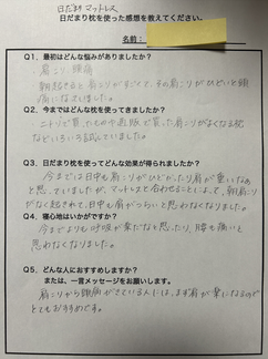 寝ていても肩、頭が痛い方や、目覚めた時から頭痛がある方におすすめしたいです。