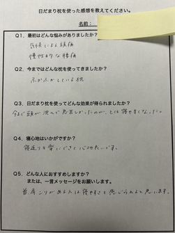 5年間毎日の頭痛が治療と枕のおかげで軽くなってびっくり!