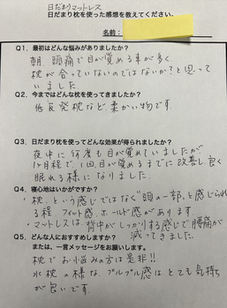 マットレスと枕の使用で肩こり頭痛と腰痛が良くなり呼吸も楽になった!